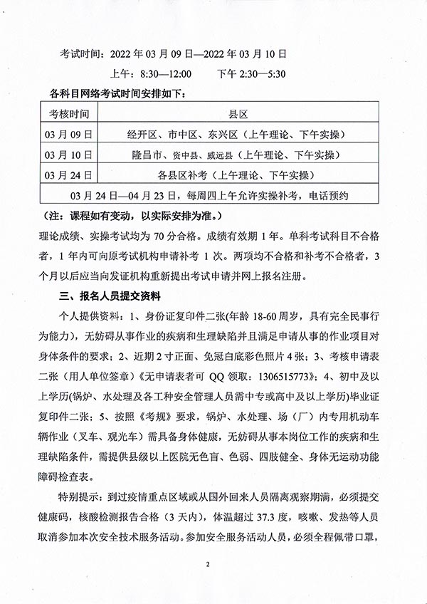 2022年春生公司02期特種設(shè)備作業(yè)人員考核時間安排