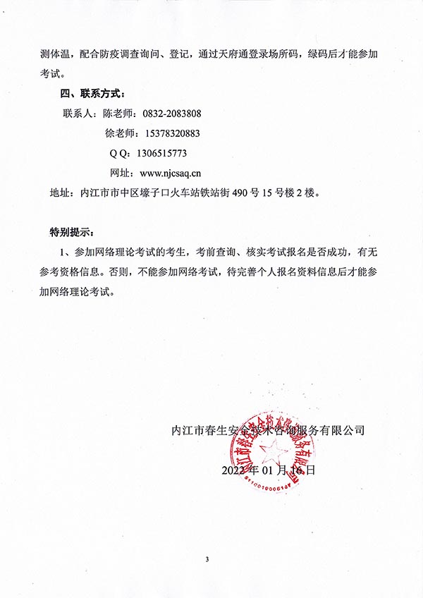 2022年春生公司03期特種設(shè)備作業(yè)人員考核時間安排