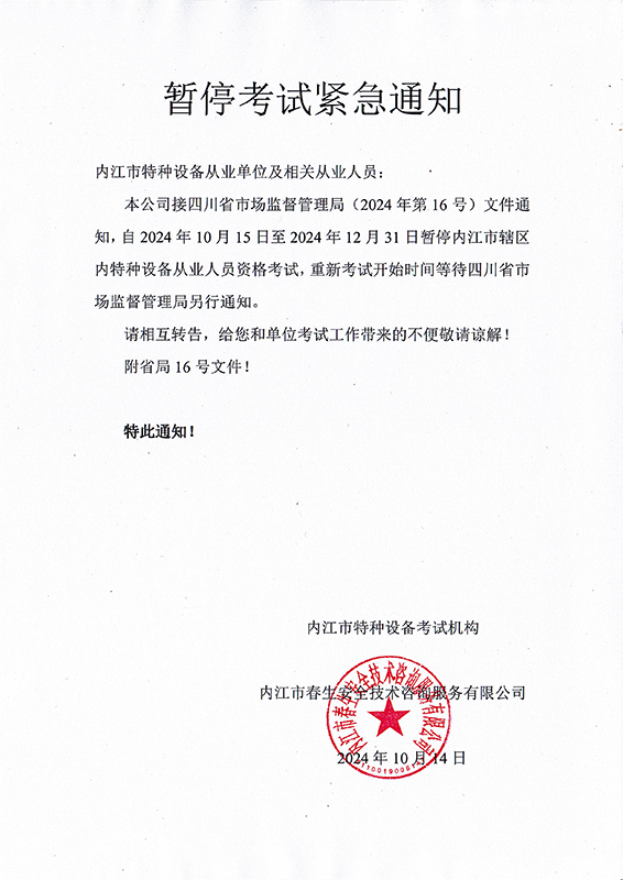 關(guān)于2025年內(nèi)江市特種設(shè)備從業(yè)人員開(kāi)始考試的緊急通知