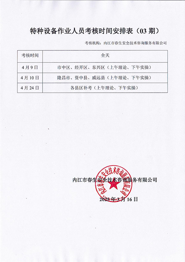 關(guān)于舉辦內(nèi)江市 (2025)04期特種設(shè)備作業(yè)人員 考核班的通知