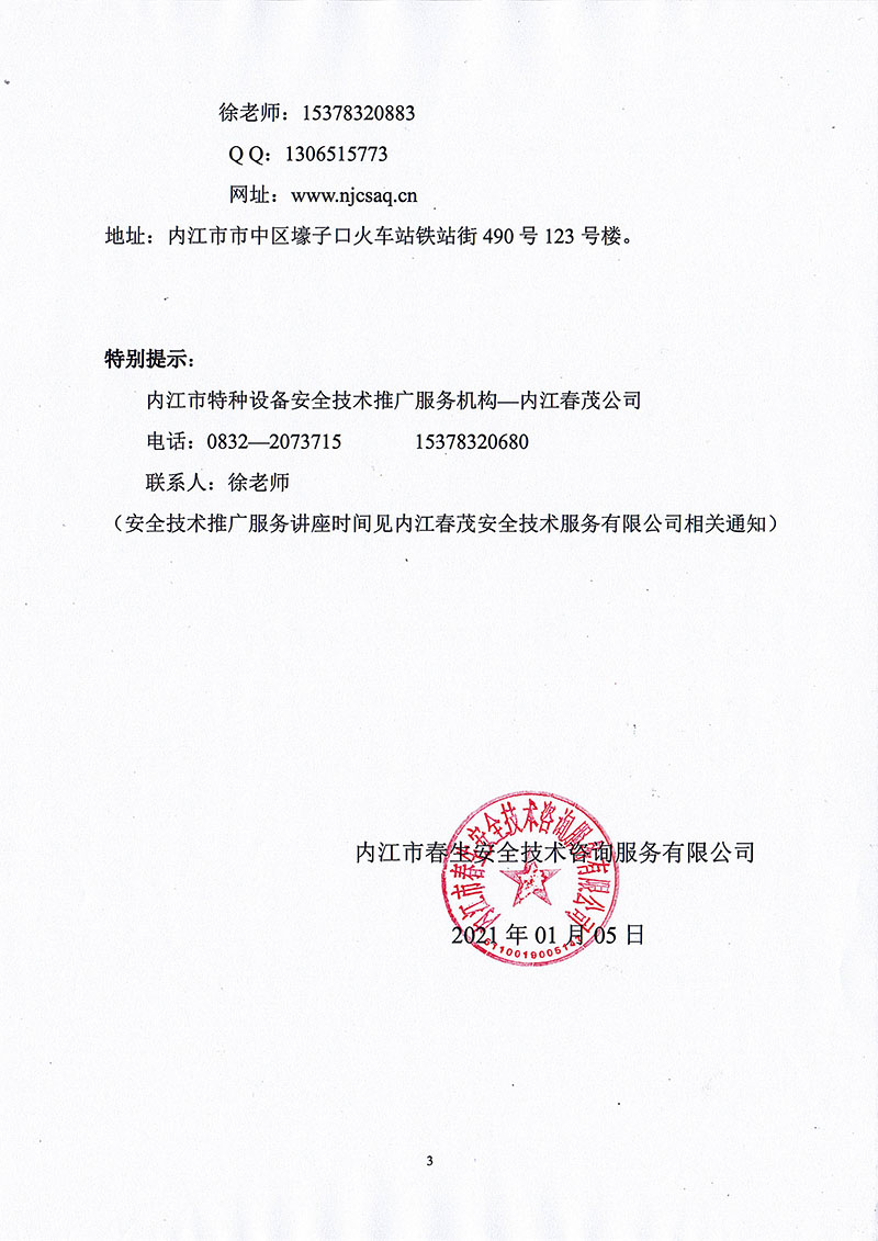 2021年春生公司03期特種設備作業(yè)人員考核班通知